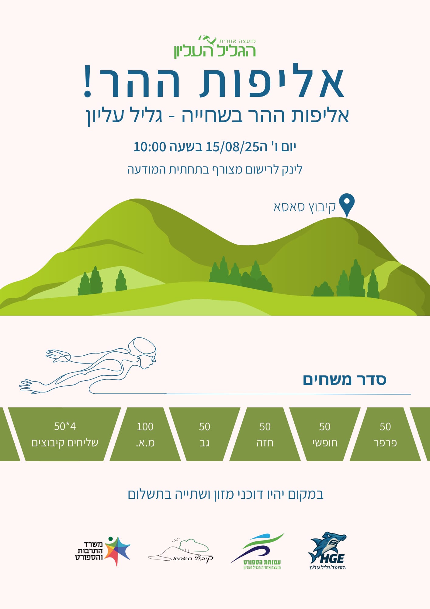 אליפות ההר בשחייה – גליל עליון | יום ו' 15.8.25 | קיבוץ סאסא.